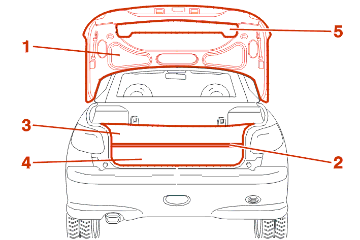 On each side : SUPPORT THE BOOT HINGE MECHANISM STOP ON THE ROOF BRACKET .