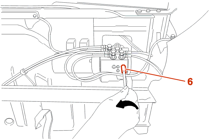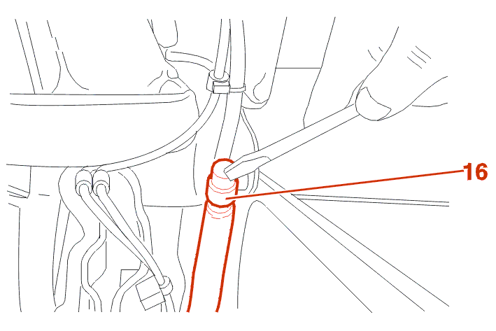 On the right-hand side : Cut the tie-wraps ; Move aside the hydraulic pipes of the mechanism .