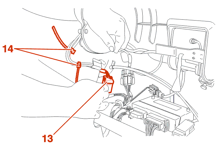 Unclip the connector (13) and disconnect it .