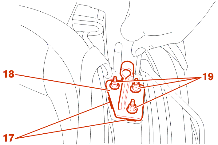 2nd person : Check the position of the plate (18) with the mark (17), Tighten the fastenings (19) .
