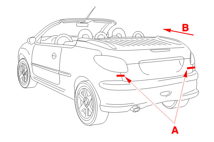 1st person : Check the clearances and flush fitting (A) pushing the boot forwards (B) and retain it in this position .