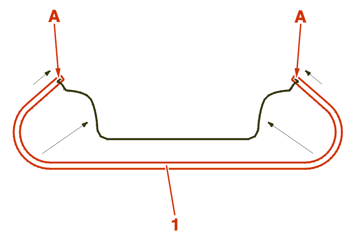 Loosen the boot seal (1) from the front side sections (A), and from the rear quarter panel internal weatherstrips (2) .