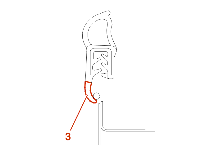Pull the cord (4) at the centre, towards each of the two ends (so positioning the lip on the trim) .