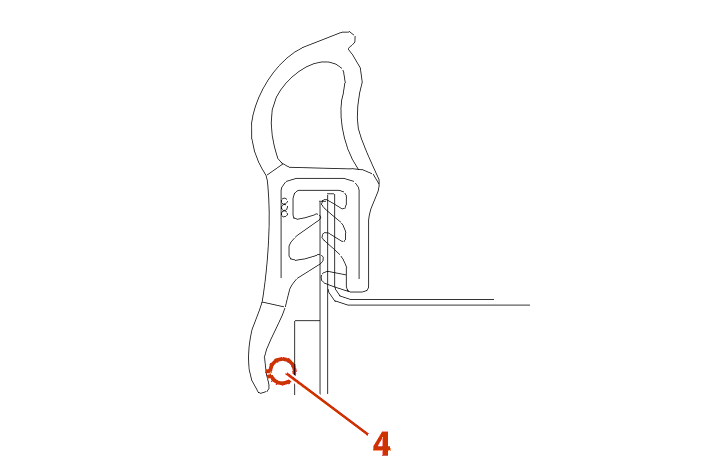Once the seal is in place, take the cord (4) under the lip at the striker .