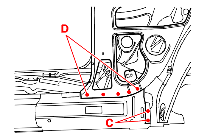 Spot weld at (D) (Using AB1 equipment) .