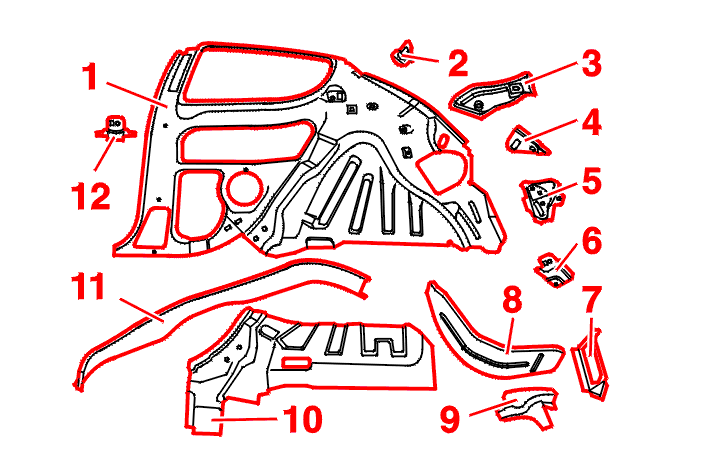 (10) Rear wheel arch stiffener .