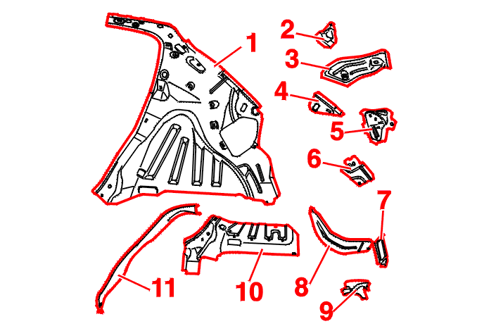 (1) Rear wing inner panel .