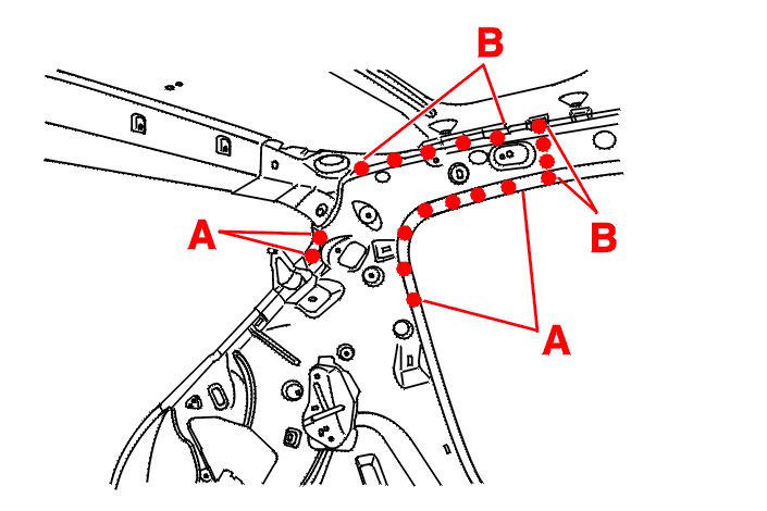 Spot weld at (At A) Using AB1 equipment .