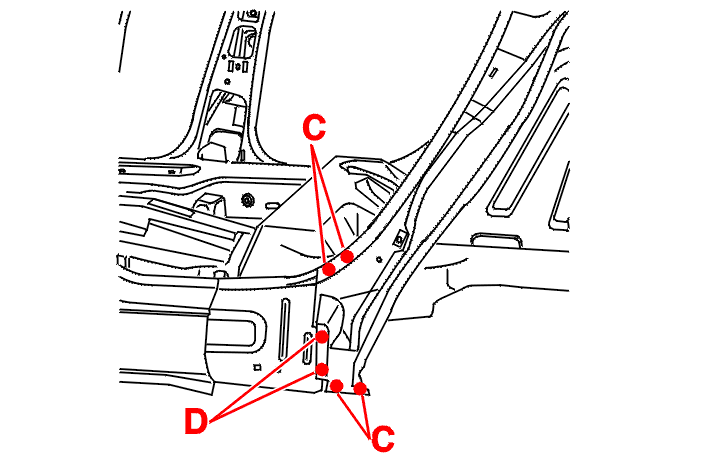 Spot weld at (C) (Using AB1 equipment) .