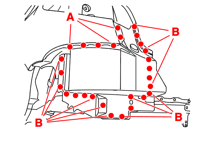 Spot weld at (At B), (Using AB1 equipment) .