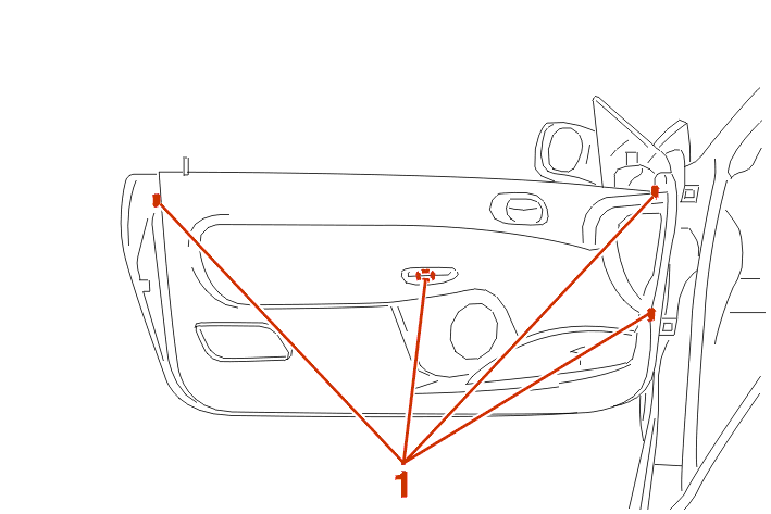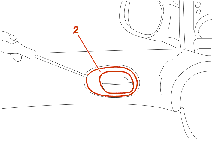 Remove the interior opening control trim (2) using a flat screwdriver .