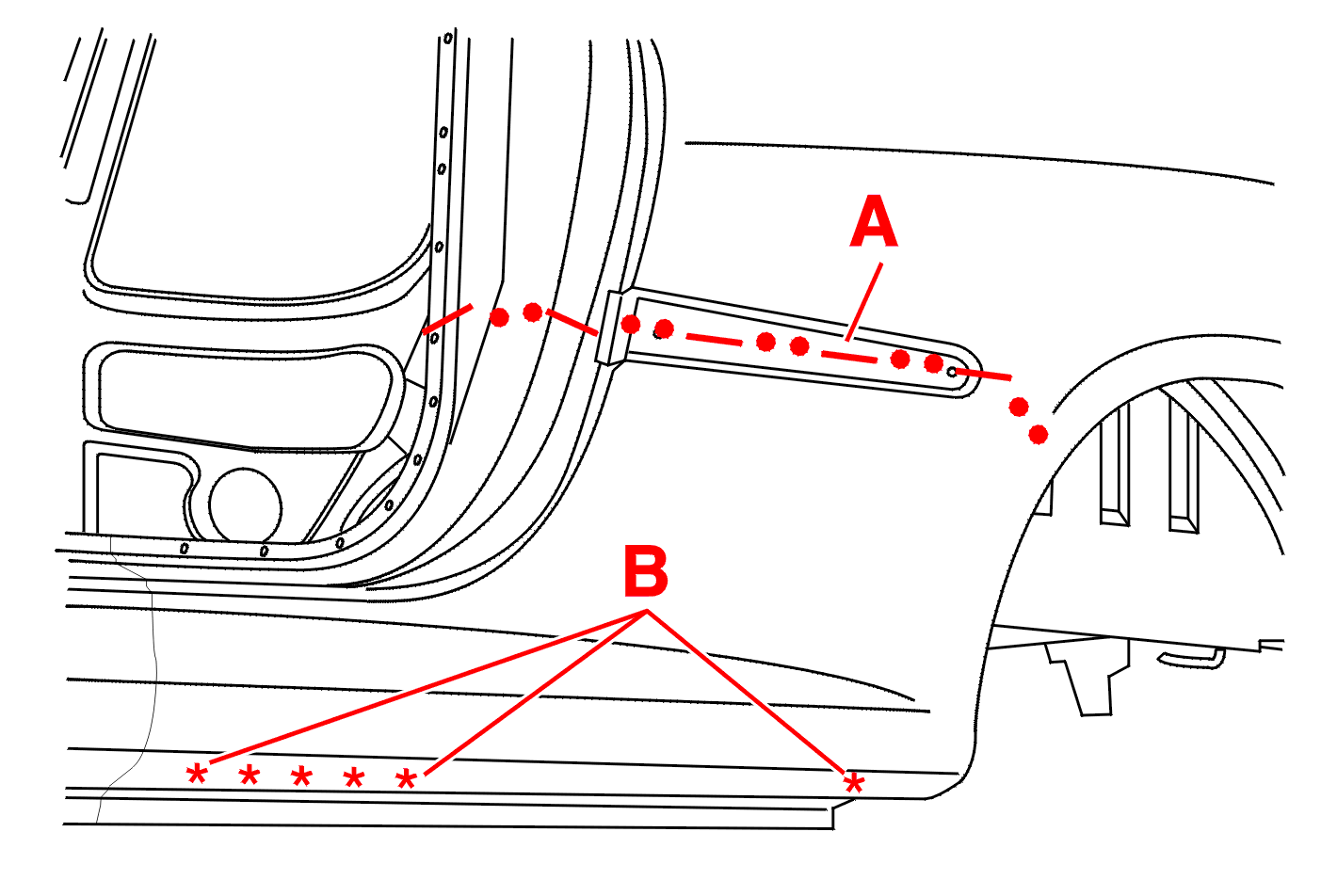 Cut out by milling out the spot welds (At B) .