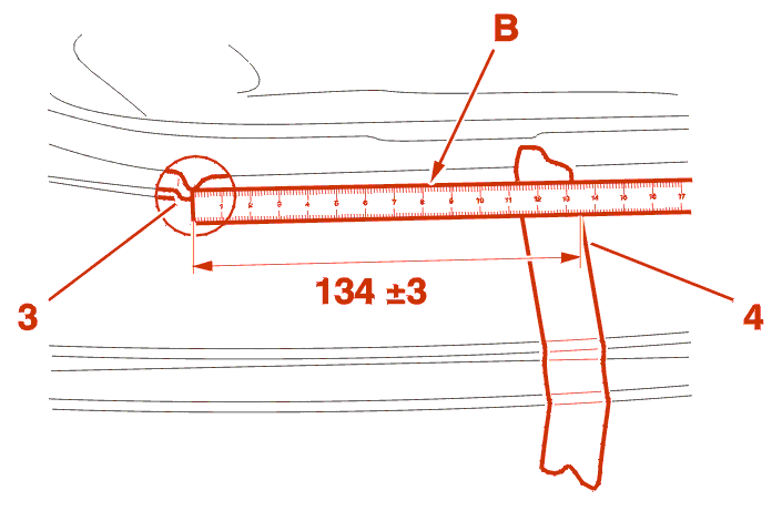 By means of a pinching action and using a carpenter's rule, measure the starting dimension for positioning the finisher (dimension (3)) .