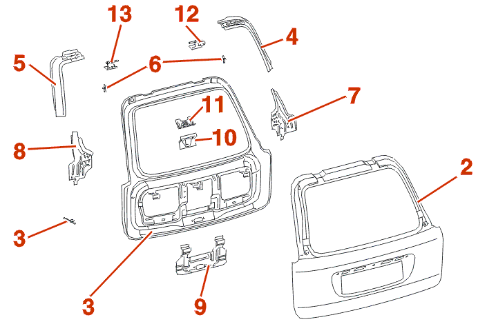 | 5 | left tailgate hinge stiffener | no | 1,47 | |