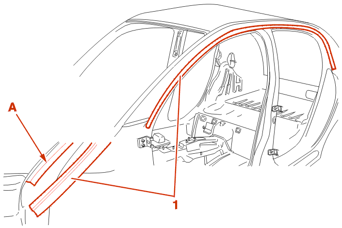 Remove the drip moulding seal (1) from the support (A) .