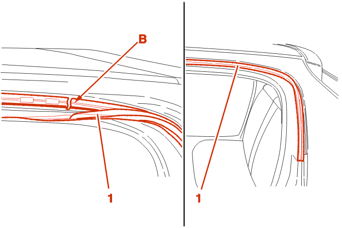 Position the drip moulding seal (1) in the housing (B) .