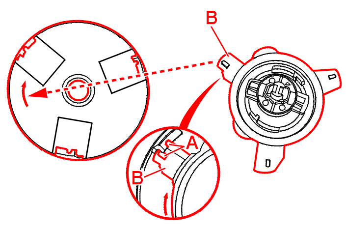 Fit opposite the arrow, the lug cut at right angles (B) .