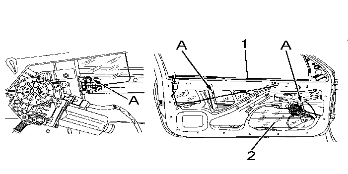 Release the glass (2) from the window winder mechanism by pushing at (A) using a flat screwdriver .