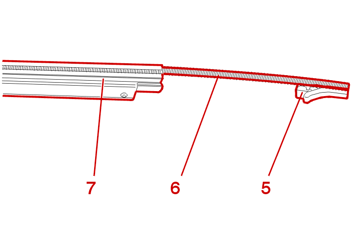 Clip a guide (4) to its carrier (5) on its respective rail and then assemble the 3 others .
