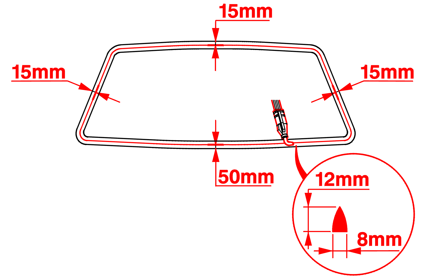 WARNING : observe the correct distances of the bead of adhesive from the edges of the glass .