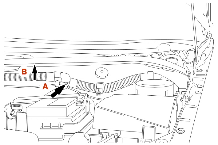 Engage the front wiper motor assembly, following a movement A then B .