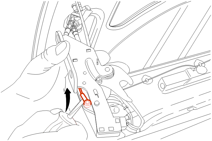 Lift then detach the cable from the hinge pin .