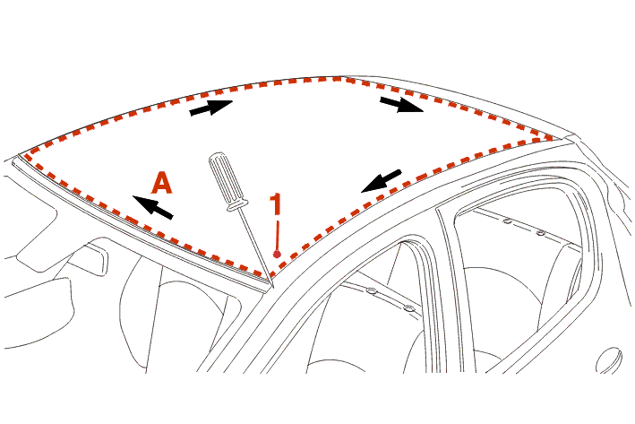 Route the cutting-out wire around the whole of the glass roof in the (A) direction and route a 50 cm length of it to the interior again .