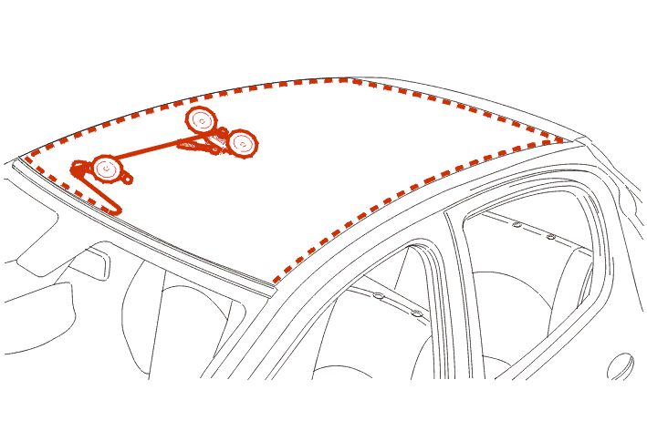 Refit the glass roof to the vehicle, taking care to centre it in relation to the markers (3) and the shims [1f] .