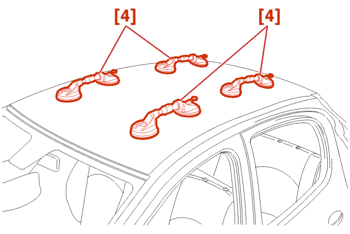 REMOVE THE GLASS ROOF USING THE 4 DOUBLE SUCTION CUPS [4] .