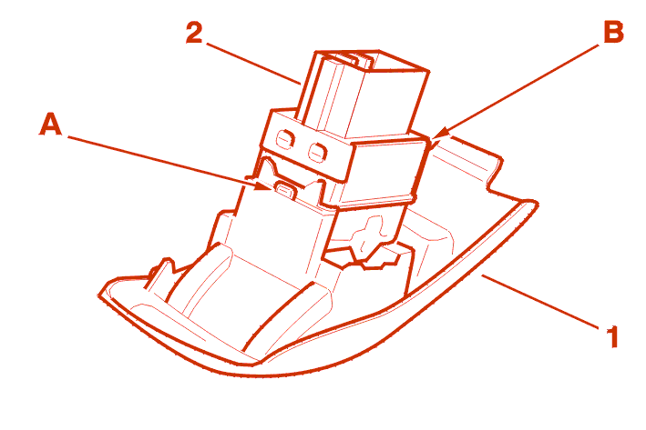 Unclip the switch (2) from the bracket (1) at (A) - (B) .
