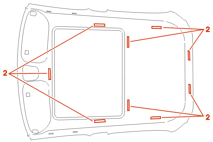 Unclip all the pieces of velcro (2) to separate the sun roof frame from the roof .
