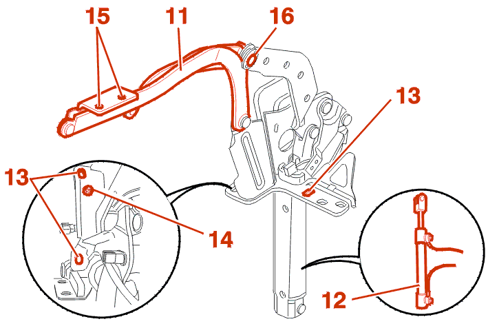The moving rear shelf hinge mechanism is moved by the strut (17) .