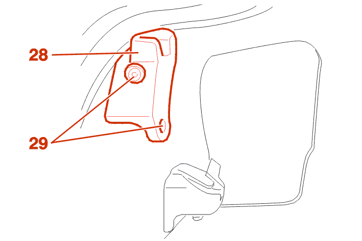 The two right and left rear supports (28) are secured inside the boot by 4 bolts (29) .
