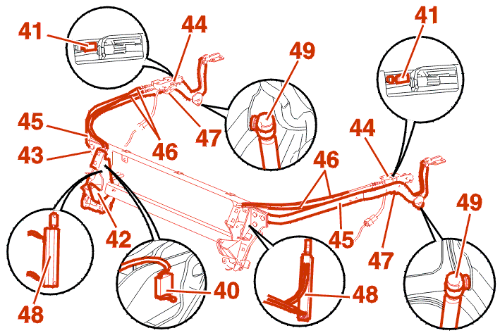 The two upper boot cover right/left locking/release systems (44) are connected by 4 cables (46) to the upper boot cover hinge mechanism .