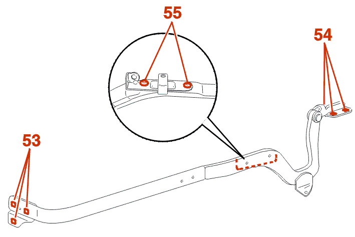 The two right and left strikers (47) are secured to the right and left hinge arms (45) by 4 fixings (55) .