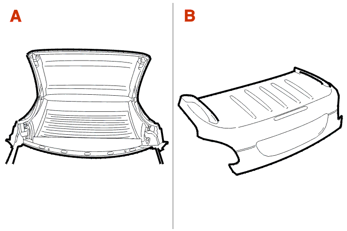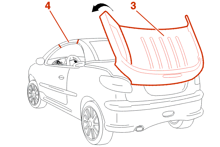 Vehicle in cabriolet version, roof open (folded and stored in the boot) .